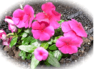 5月末、みんなで花の苗を買いに行き、植えました。ニチニチソウとジニアの苗。もう色とりどり!